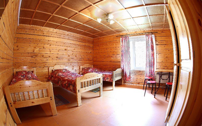 - Трехместный с балконом и видом на Байкал. Одноместные кровати, шкаф, стол, зеркало, горячая и холодная вода, душ, 2 с/узла на секцию (3 номера).