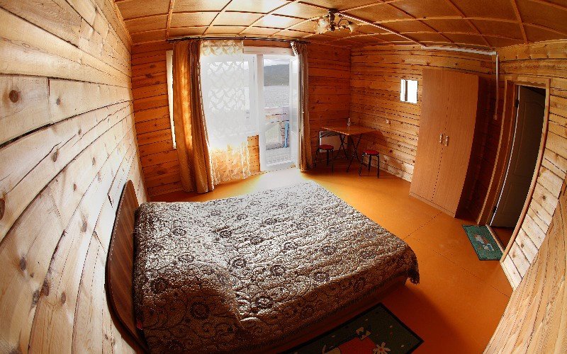 - Двухместный с балконом и видом на Байкал. 2-х спальная кровать, шкаф, стол, зеркало, горячая и холодная вода, душ, 2 cанузла на секцию (3 номера).