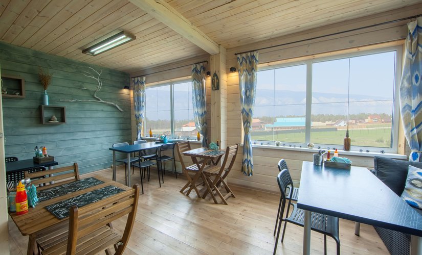 К услугам гостей на территории лодж-отеля ежедневно работает ресторан с видом на Байкал, в котором каждое утро сервируется завтрак.
