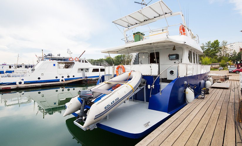 Относится к катерам премиум-класса на Байкале. В отделке судна использовано дерево благородных пород, красное дерево Сапеле, Дуб.