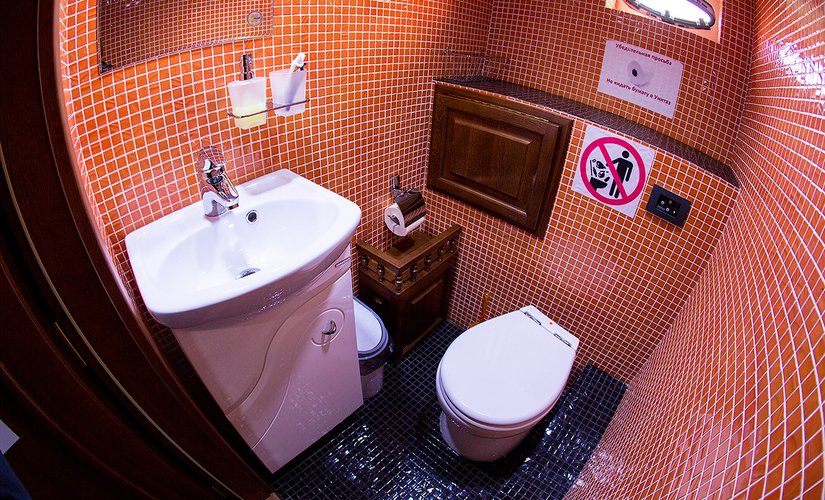 В носовой части расположены душевая и гальюн(совмещенные).В кормовой части душ и гальюн раздельные.