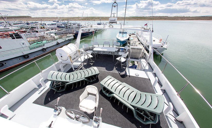 На корме оборудована площадка для купания и рыбалки, так же на площадке имеется душ с горячей и холодной водой.